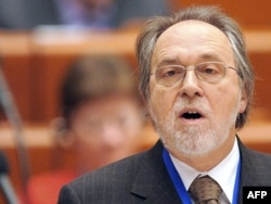 Dik Marti tokom sednice Parlamentarne skupštine Saveta Evrope na kojoj je usvojena rezolucija na osnovu njegovog izveštaja, 25. januar 2011.