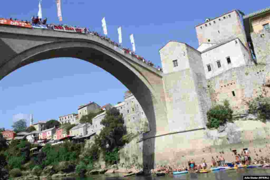 Mostarac Lorens Listo pobjednik je 446. skokova sa Starog mosta, čime je odbranio titulu najboljeg u kategoriji skokova na glavu. Drugi je bio takođe Mostarac Ilija Spasovski, a treći Aleksandar Simanić iz Užica. , 29.7.2012. RSE Foto/Adla Dizdar