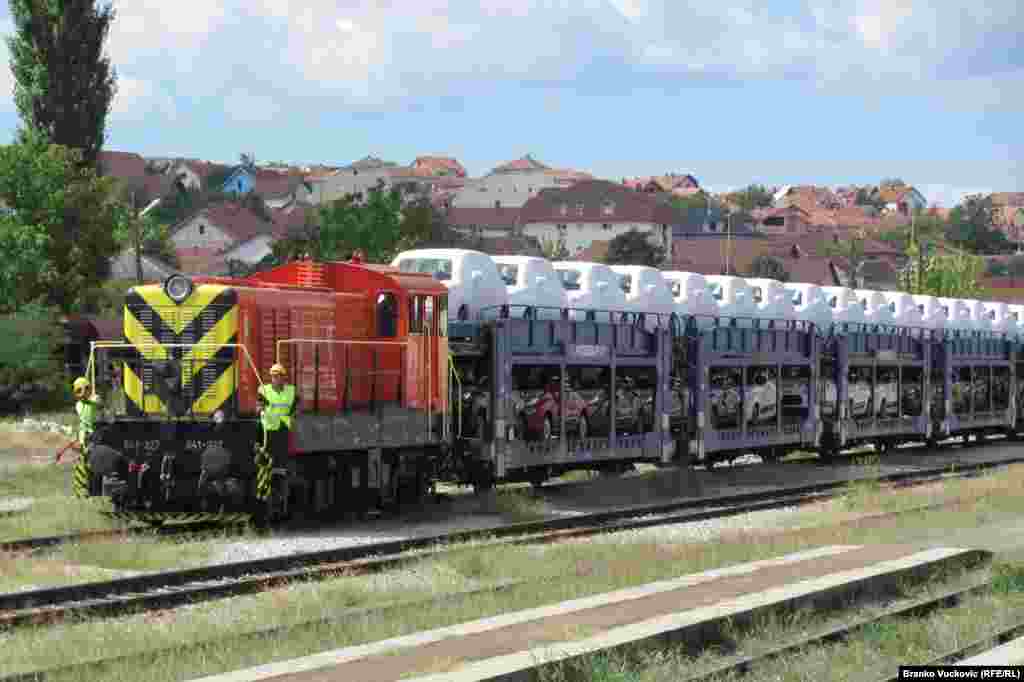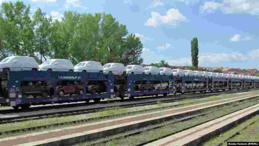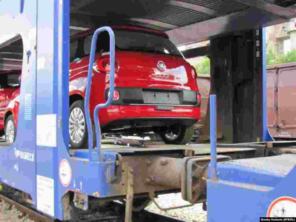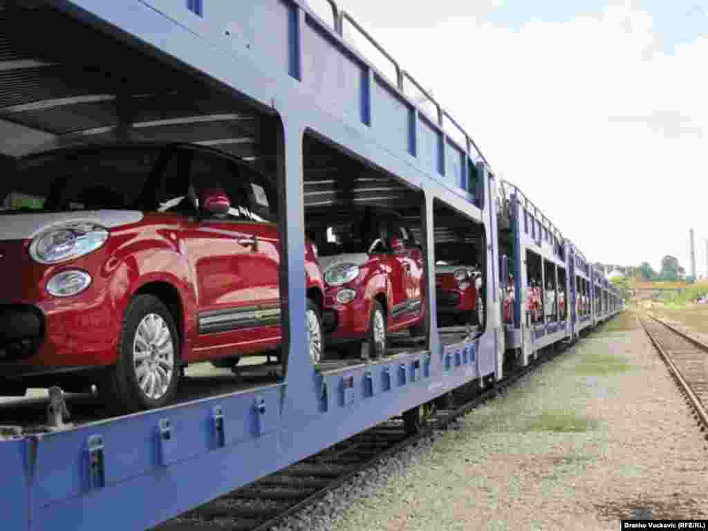 Prvi auto voz sa 206 automobila 'fiat 500L', namenjenih izvozu, krenuo je u ponedeljak iz Kragujevca prema luci Bar u Crnoj Gori, odakle će vozila brodom biti transportovana do Italije. Kompanija Fiat automobili Srbija planira da tokom ove i naredne godine izveze oko 200.000 automobila u celi svet. Kragujevac, 13.8.2012. RSR foto/Branko Vučković