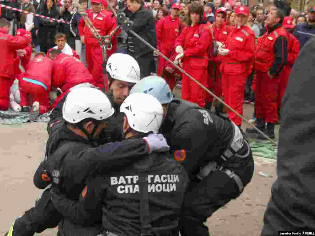 Pripadnici Civilne zaštite severne Mitrovice održali su u nedelju pokaznu vežbu za spasavanje ljudi u slučaju požara u severnom delu grada. Tom prilikom, pokazali su pred mnogobrojnim građanima svoju opremljenost i obučenost za delovanje u vanrednim situacijama. Pokaznu vežbu Civilne zaštite u severnoj Mitrovici organizovala je Kacelarija za Kosovo Vlade Srbije. FOTO: Jasmina Šćekić