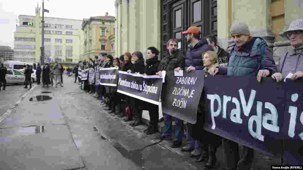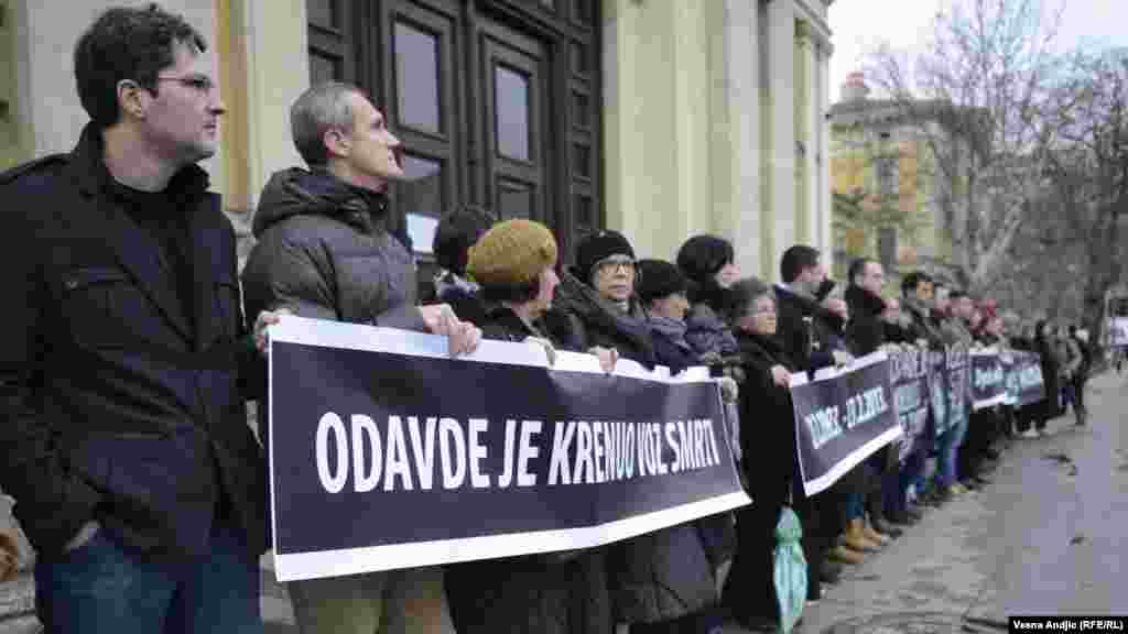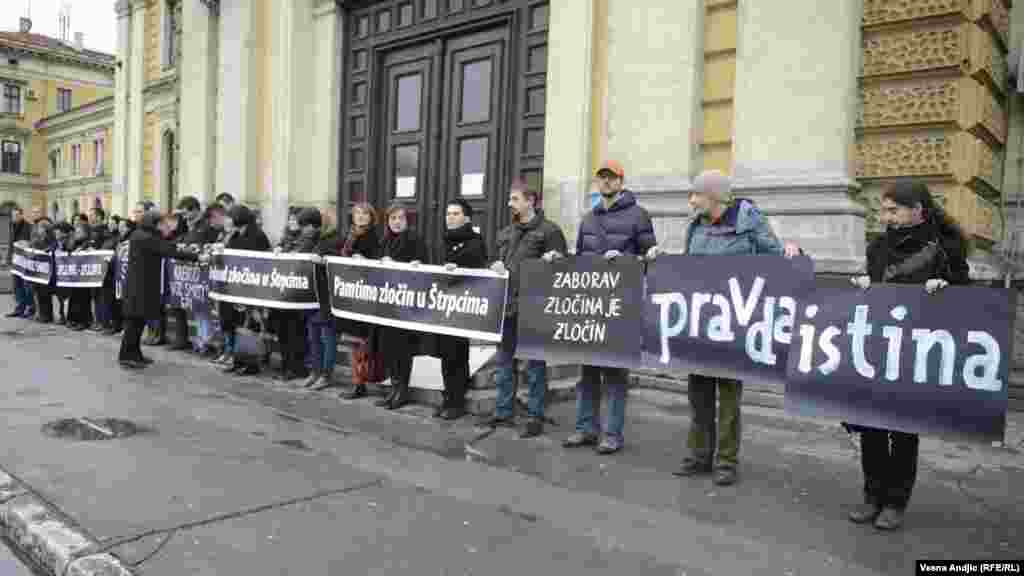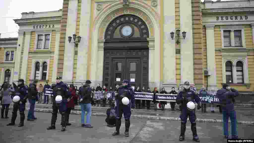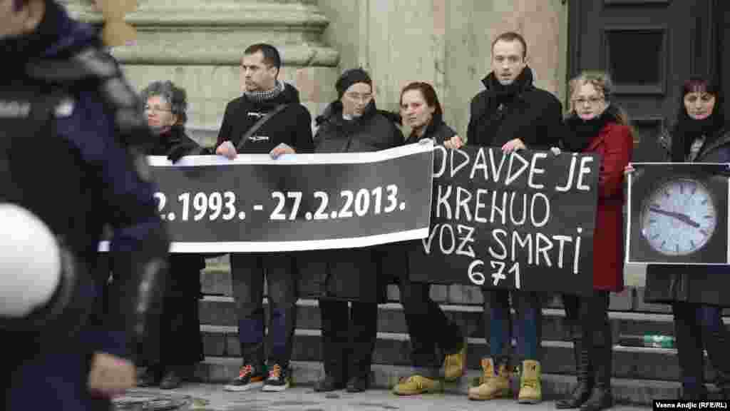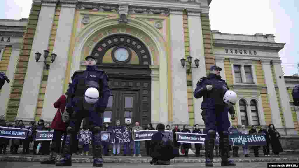Na Glavnoj železničkoj stanici u Beogradu simbolično su se u 15.48h, kada su putinici pre 20 godina oteti iz voza, okupili predstavnici nekolicine nevladinih organizacija. Žene u crnom, Inicijativa mladih za ljudska prava i Fond za humanitarno pravo, uz transparente kojima podsećaju na zločin i traže pravdu za žrtve, delili su prolaznicima vozne karte, iste onakve koje su pre 20 godina kupili putnici voza smrti.