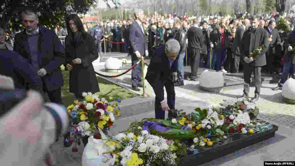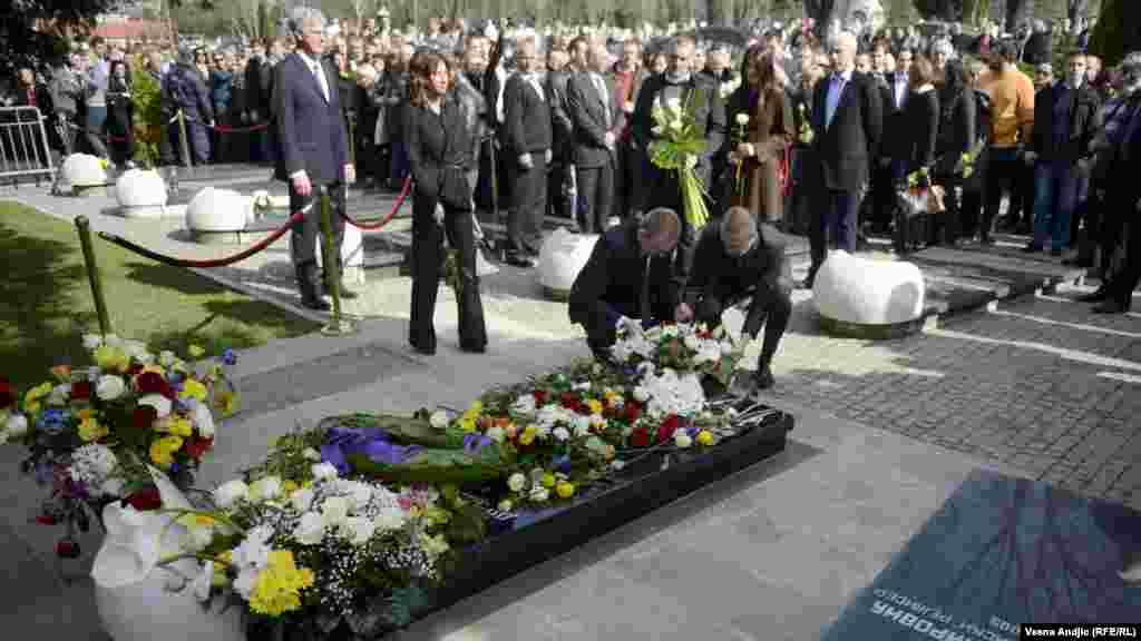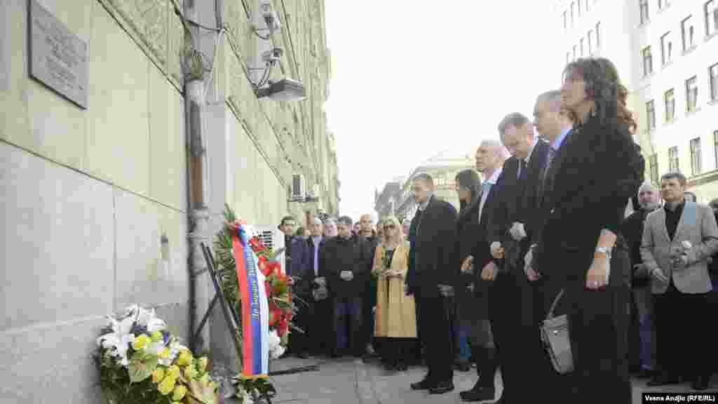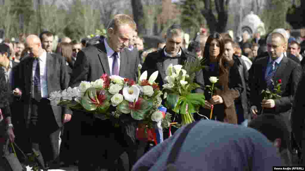 Premijer Vlade Vojvodine Bojan Pajtić polaže cveće na mesto ubistva premijera Đinđića