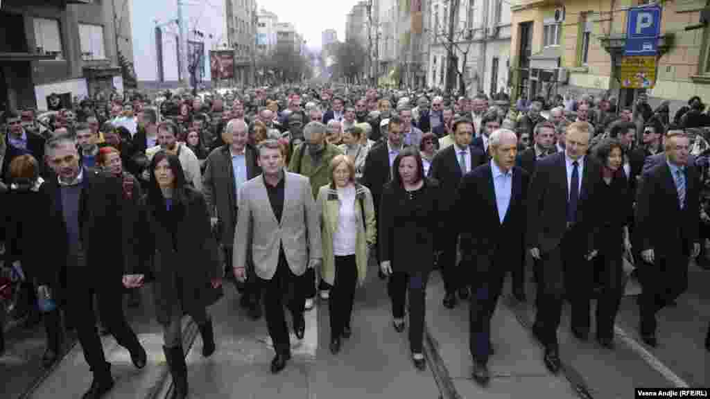 Kolona od više hiljada ljudi prošetala je centralnim ulicama Beograda do Novog groblja odajući poštu ubijenom premijeru Zoranu Đinđiću. „Šetam za Zorana“ prvi put su zajedno organizovale Liberalno–demokratska partija i Demokratska stranka. Foto: Vesna Anđić