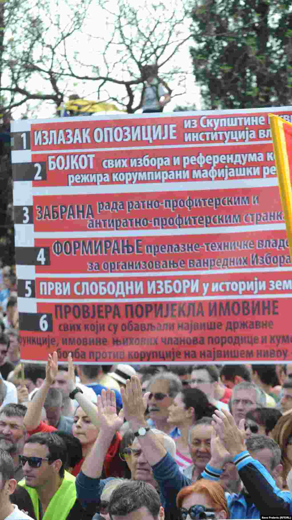 Opozicija je sa protesta u Podgorici zatražila nove izbore. Demonstranti su ubijeđeni da je vladajuća DPS i njen predsjednički kandidat Filip Vujanović "pokrali" nedavno održane predsjedničke izbore i oduzeli pobjedu nezavisnom kandidatu Miodragu Lekiću.