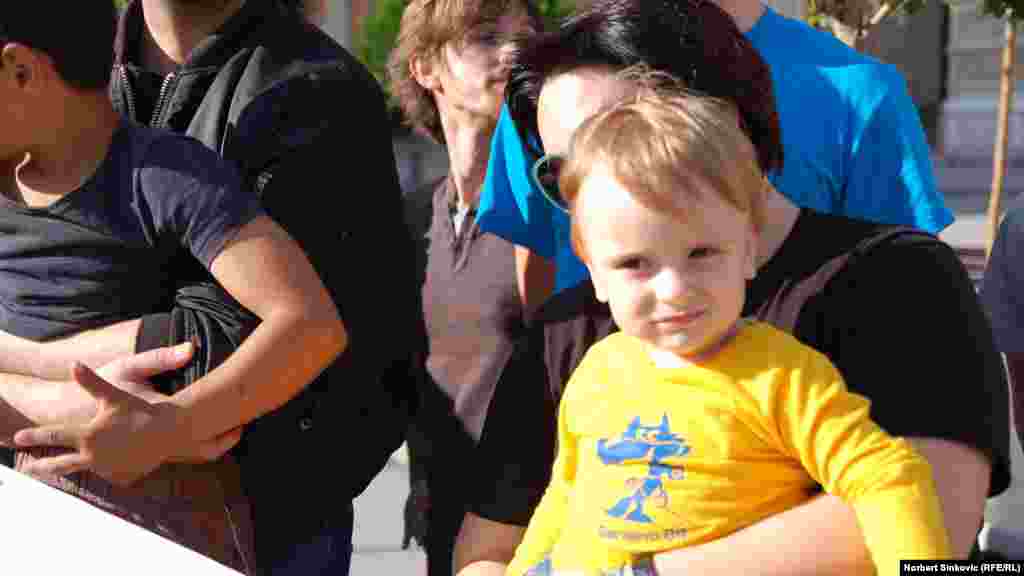 Novom Sadu je održan skup podrške građanima Sarajeva koji već danima traže rešavanje problema izdavanja matičnih brojeva novorođenčadima. Foto: RSE / Norbert Sinković, 11. juni 2013.