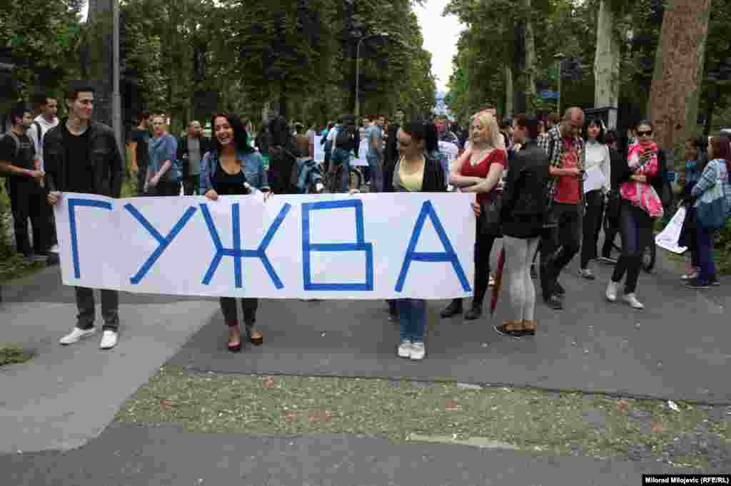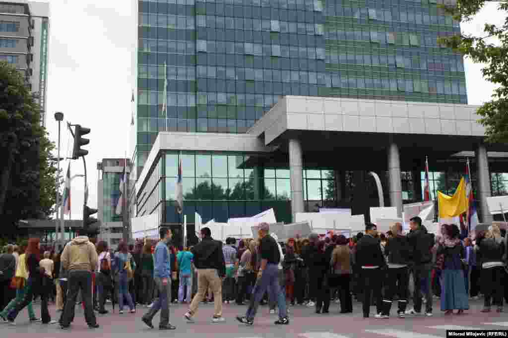 Nekoliko hiljada banjalučkih studenata, aktivista, sindikalista, demobilisanih boraca, invalida, penzionera i nezadovoljnih građana okupilo se nakon šetnje pred zgradom Vlade RS, gdje ih je dočekalo oko 300 stotine demonstranata. Studenti, između ostalog, traže da vlast konačno krene u odlučnu borbu protiv kriminala, korupcije i nepotizma u društvu i da počne da radi u interesu građana a ne samo da se brine o ličnim interesima i interesima tajkuna. FOTO: Gojko Veselinović, Milorad Milojević