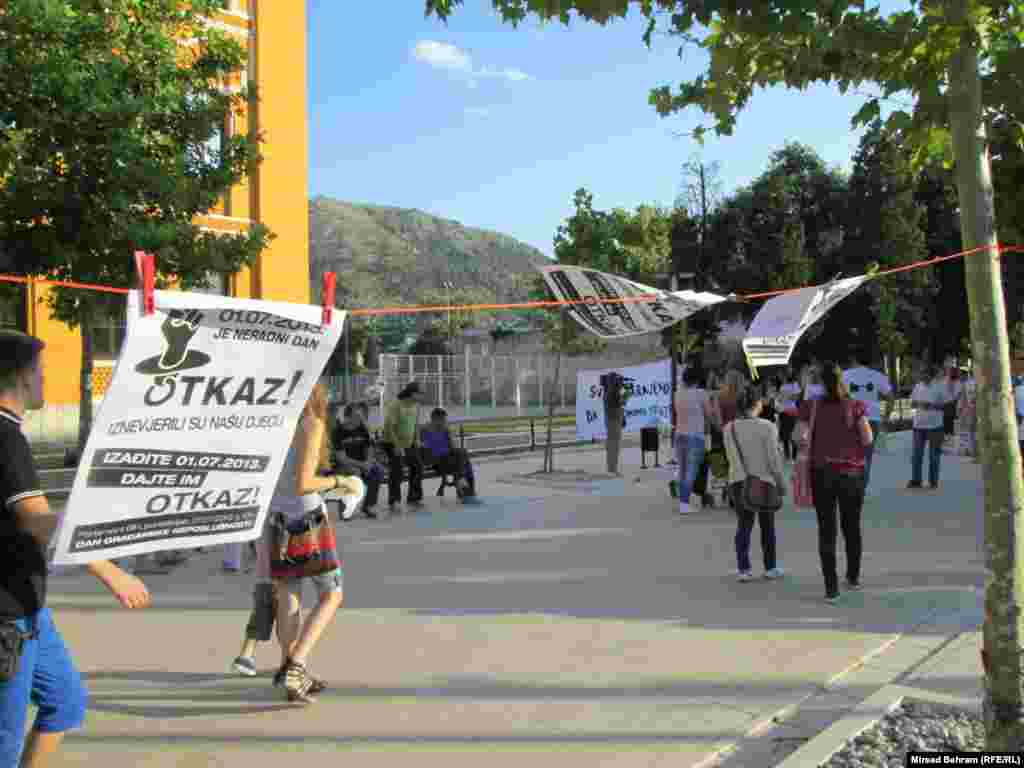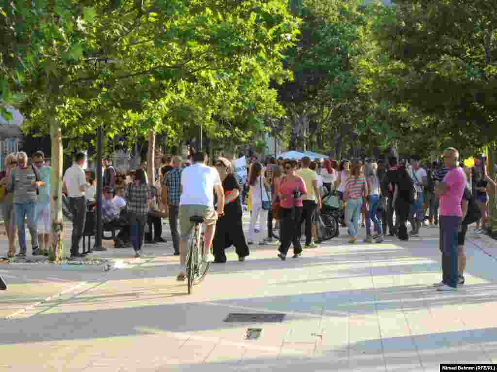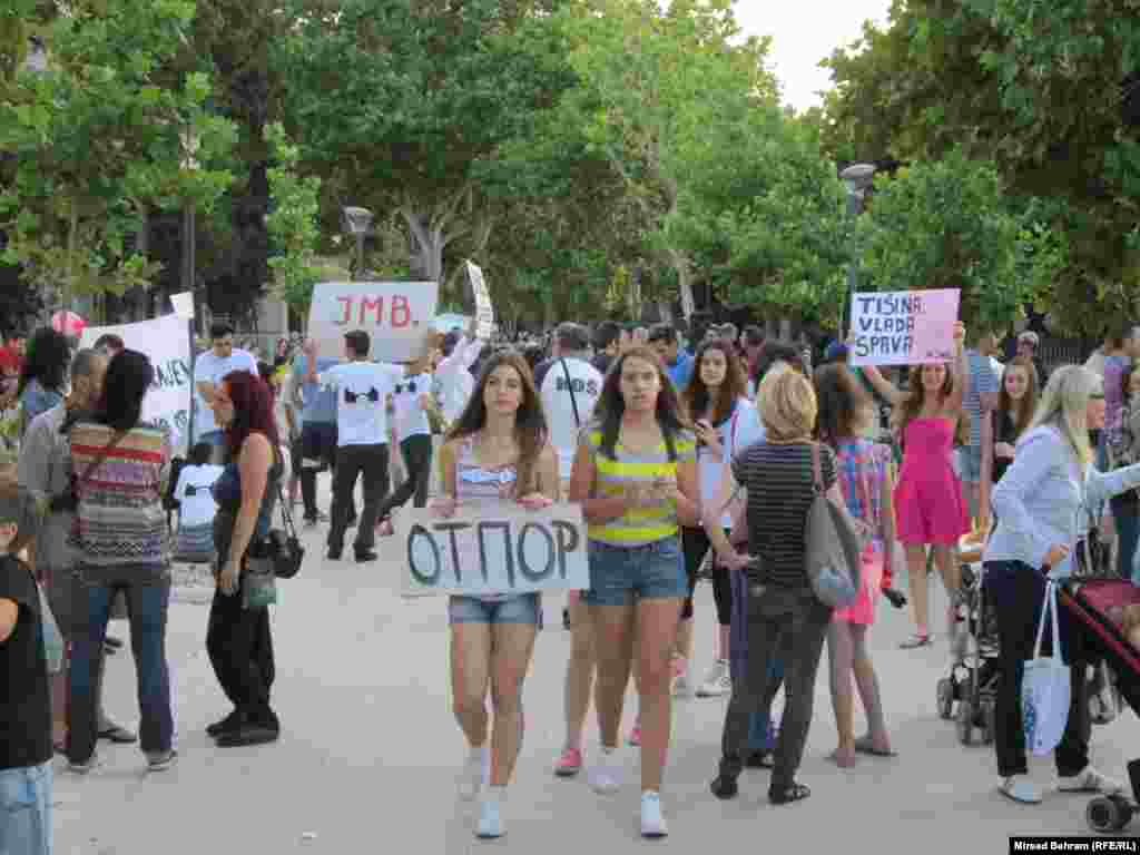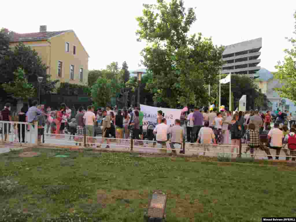 "Kreativni protesti za JMBG", naslov je okupljanja koje je u nedjelju uveče održano na Španskom trgu, u centru Mostara. Na skupu je učestvovalo nekoliko stotina građana i građanki Mostara svih generacija, te različitih etničkih grupa tog još uvijek podijeljenog grada. FOTO: Mirsad Behram