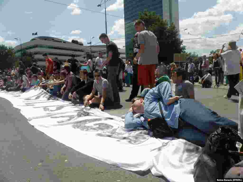 U 10 sati 1. jula ispred Parlamenta BiH počeli su protesti zbog neusvajanja zakona o jedinstvenom matičnom broju (JMBG). Moto tih protesta je "Izađi, daj im otkaz", kojima se građani BiH pozivaju na građansku neposlušnost - neplaćanje računa i sl. Na protestu u Sarajevu okupilo se nekoliko stotina ljudi. Foto: Aida Đugum i Zvjezdan Živković