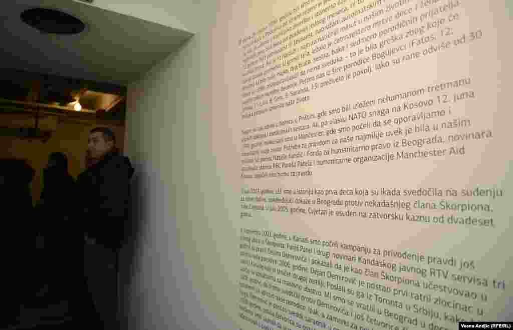 Izložba "Bogujevci - Vizuelna istorija" koja govori o ratnim zločinima nad porodicom Bogujevci u Podujevu otvorena je u sredu uveče u galeriji "Podroom" Kulturnog centra Beograda. Policija je uoči otvaranja izložbe udaljila grupu od dvadesetak osoba uglavnom pripadnika desničarskih organizacija koji su protestovali protiv postavke. 18. decembar 2013.