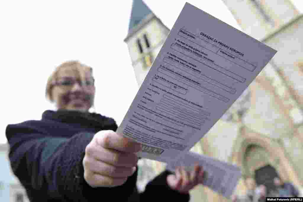 Fondacija CURE u suradnji sa Antikorupcijskom mrežom organizacija civilnog društva u BiH ACCOUNT organizirala je uličnu akciju na kojoj se sa građanima/kama razgovralo o korupciji, tačnije o borbi protiv korupcije, s naglaskom na korupciji u obrazovanju, FOTO: Midhat Poturović