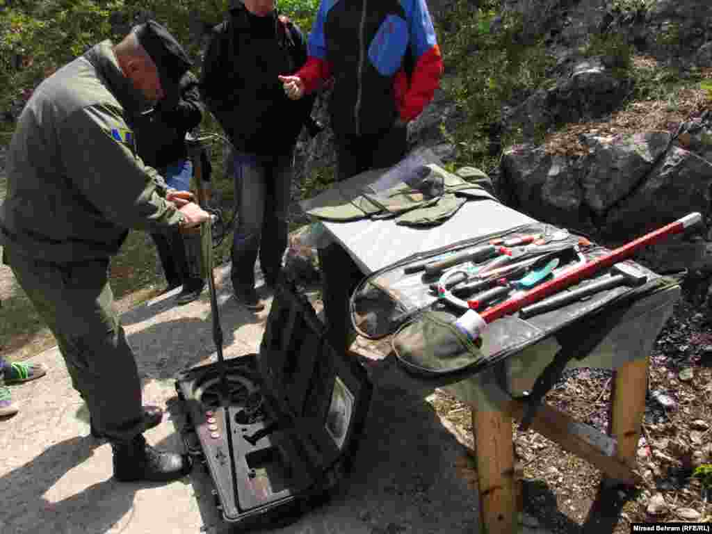 Pripadnici Oružanih snaga BiH, na padinama brda Hum, tik iznad jednog od mostarskih naselja, posljednjih dana pronašli su dvije mine, te više komada neeksplodiranih ubojitih sredstava iz proteklog rata. FOTO: Mirsad Behram