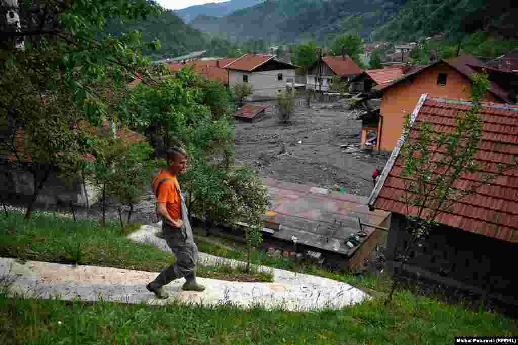 Topčić Polje, naselje nedaleko od Žepča u BiH, uništeno je u velikim poplavama koje su zadesile regiju. Nekada vrlo živopisan krajolik zamijenili su blato, voda, mulj, šljunak, razorene i muljem zatrpane kuće. FOTO: Midhat Poturović