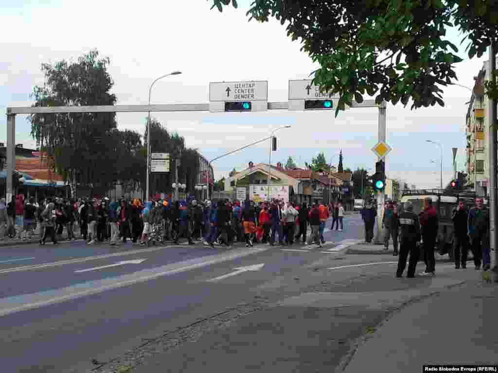 Desetine ljudi su povređene kada su se sinoć demonstranti sukobili sa policijom u skopskom naselju Gjorče Petrov. Policija je koristila suzavac i šok bombe protiv demonstranata.