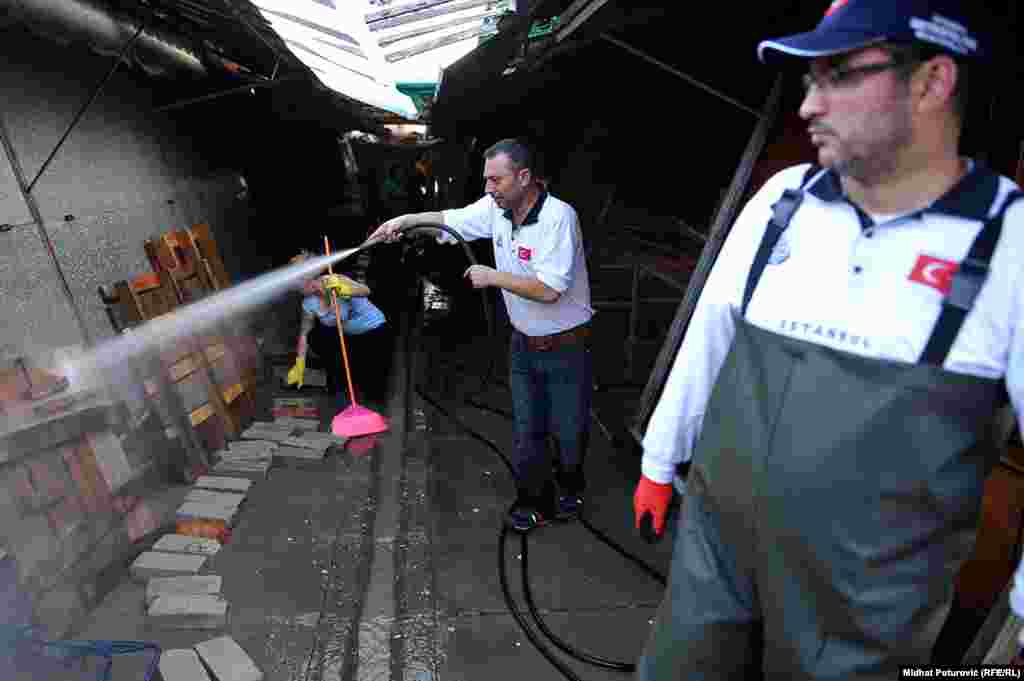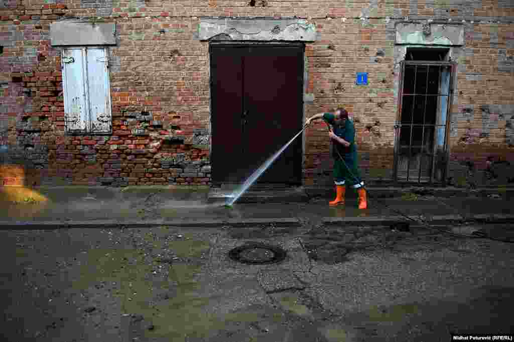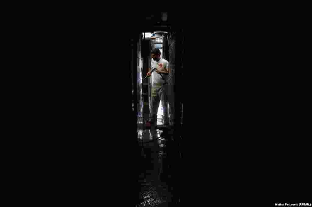 Prigradska naselja oko Brčkog, koja su poplavila prije šest dana, u srijedu su čistile i ispumpavale vodu iz poplavljenih dvorišta i cesta, spasilačke ekipe iz Turske. U Brčkom je tim od 50 ljudi sa 25 mašina, a mještani kažu kako su oni jedini koji su im, pored komšija, pritekli u pomoć. FOTO: Midhat Poturović