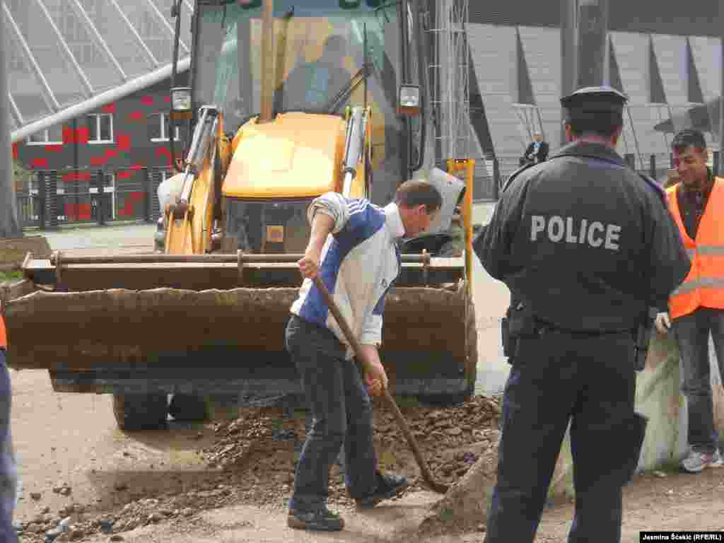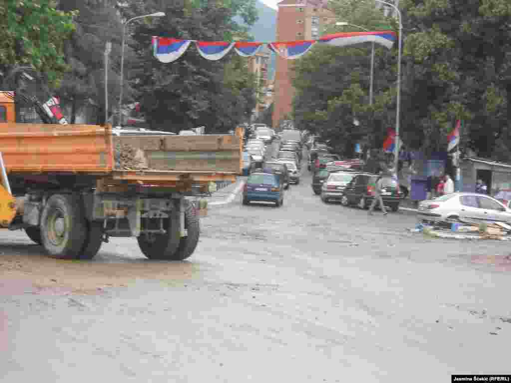 Građani severne Mitrovice su noćas u ranim jutarnjim satima uklonili barikadu koja se nalazila na severnoj strani glavnog ibarskog mosta u ovom delu Mitrovice. Građani su barikadu uklonikli uz pomoć kamiona i teške mehanizacije. RSE foto: Jasmina Šćekić