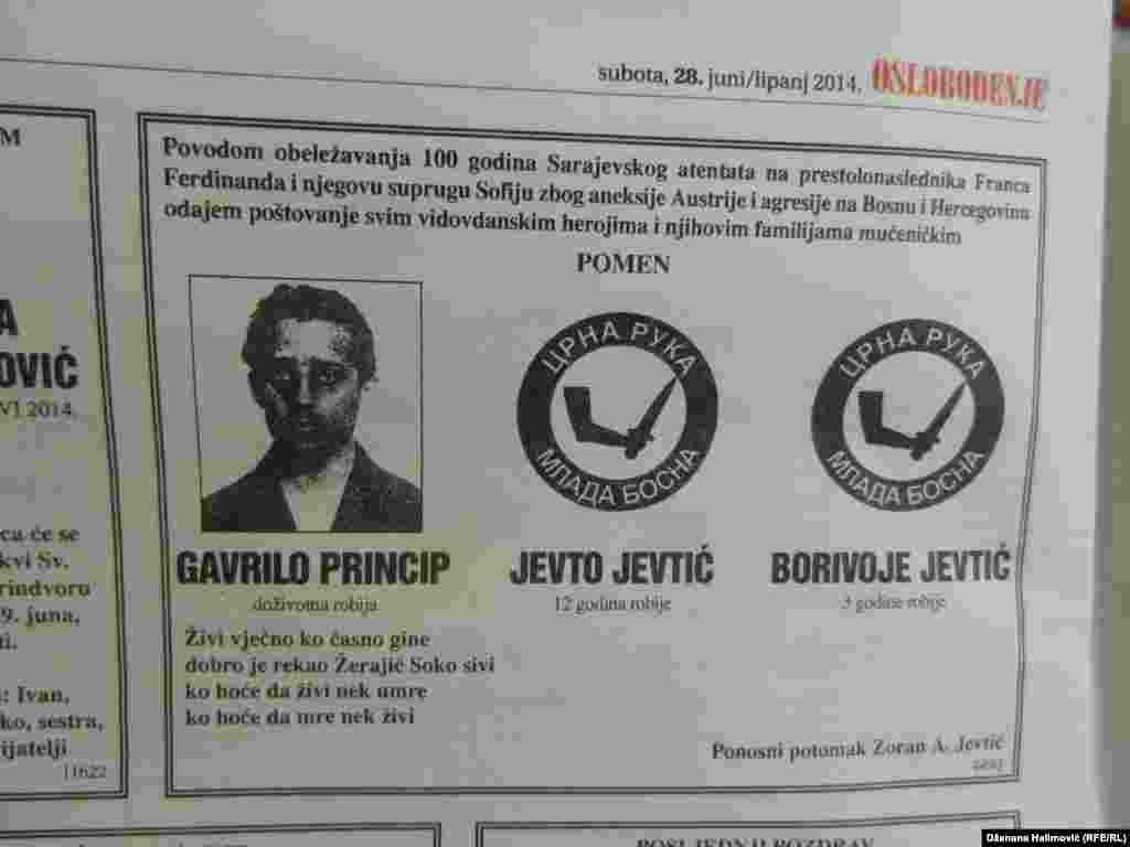 Glavni grad Bosne i Hercegovine obilježava stotu godišnjicu od početka Prvog svjetskog rata i Sarajevskog atentata. Pored brojnih izložbi, okruglih stolova, naučnih konferencija koje su bile organizovane od početka godine do sada, uveče je u obnovljenoj Vijećnici odražan koncert Bečke filharmonije, a centralna manifestacija planirana je prije ponoći, prije kraja dana na koji je Gavrilo Princip u centru Sarajeva ubio austrougarskog prijestolonasljednika Franca Ferdinanda i njegovu ženu Sofiju.