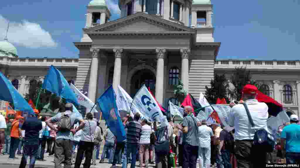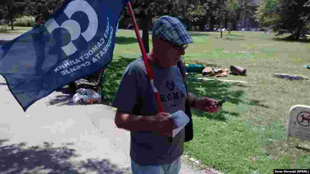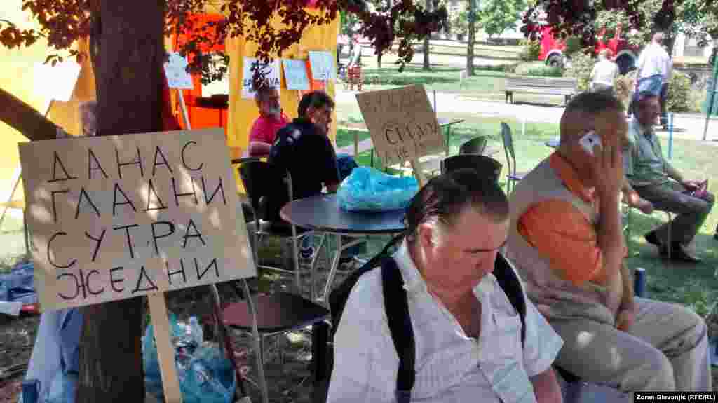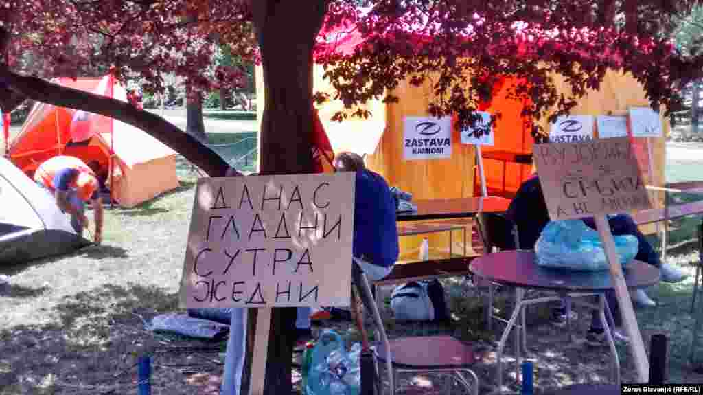 Članovi sindikata i aktivisti protestuju u Beogradu protiv Zakona o radu i Zakona o penziono - invalidskom osiguranju o kojima Skupština Srbije raspravlja. Postavili su šatore u Pionirskom parku gde će boraviti do četvrtka, kada se očekuje veliki sindikalni protest radnika iz cele Srbije. FOTO: Zoran Glavonjić