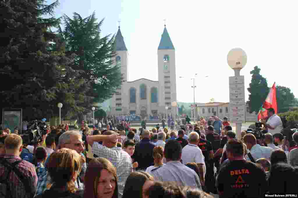 Marina Čilića, hrvatskog tenisera, rođenog u Međugorju u BiH, koji je nedavno osvojio Grand Slam turnir US Open u New Yorku, u utorak poslijepodne je ispred župne crkve dočekala masa ljudi u rodnom mjestu. FOTO: Mirsad Behram