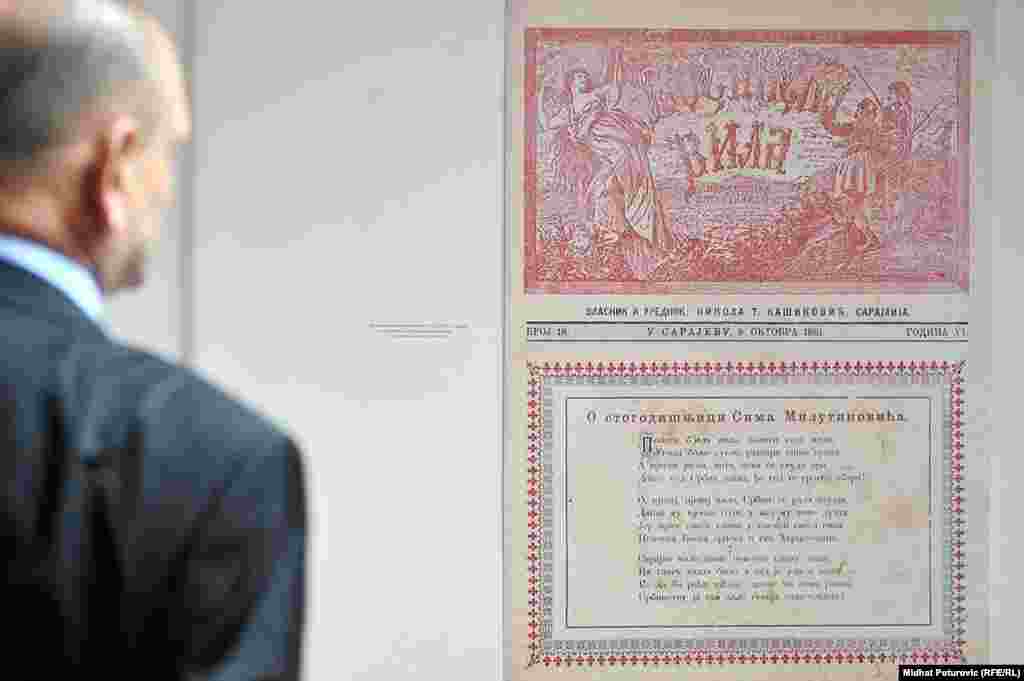 U petak je u Galerija MAK u Sarajevu otvorena izložba „Pjesnik nebom osijani“ posvećena liku i djelu Sime Milutinovića Sarajlije, istaknutog pjesnika, izdavača, istoriografa, prevodioca i pedagoga. Posvećena je 200. godišnjici od prvog štampanja pjesme čovjeka koji je, unatoč činjenici da je iz rodnog grada otišao još kao dječak, čitav svoj život vezao za ime rodnoga grada. RSE/Foto: Midhat Poturović