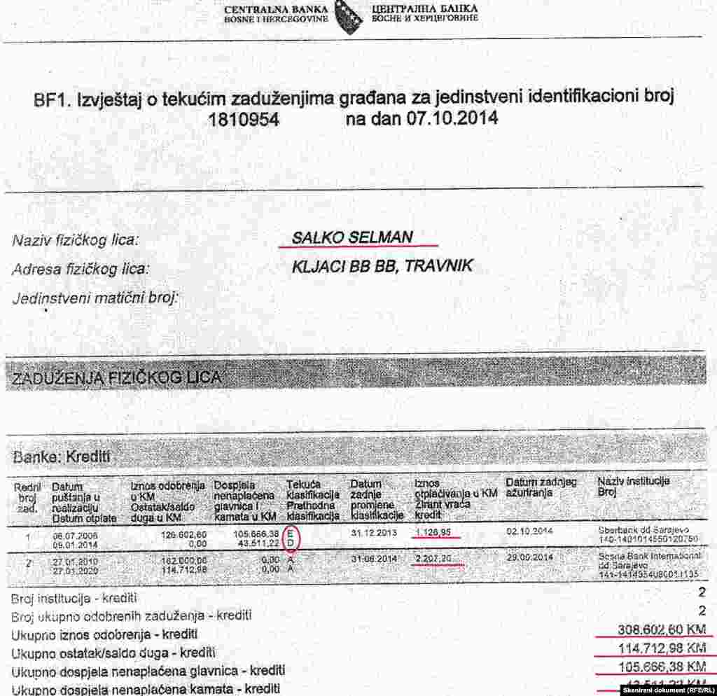 Obrasci kao dokaz da aktuelni direktor Razvojne banke FBiH Salko Selman ne vraća kredite i da ga je zbog toga tužila SBERBank, bivša Volksbank.