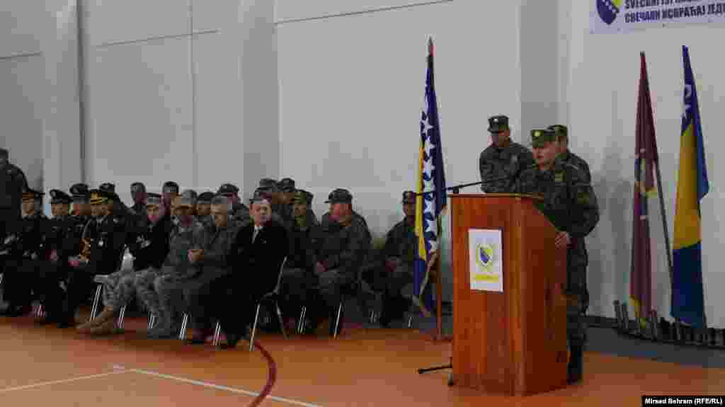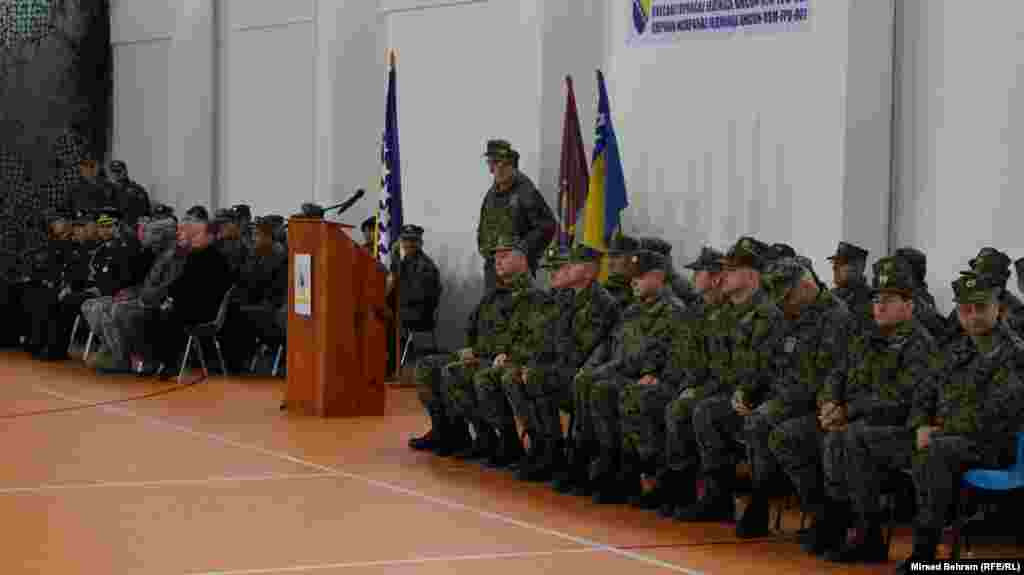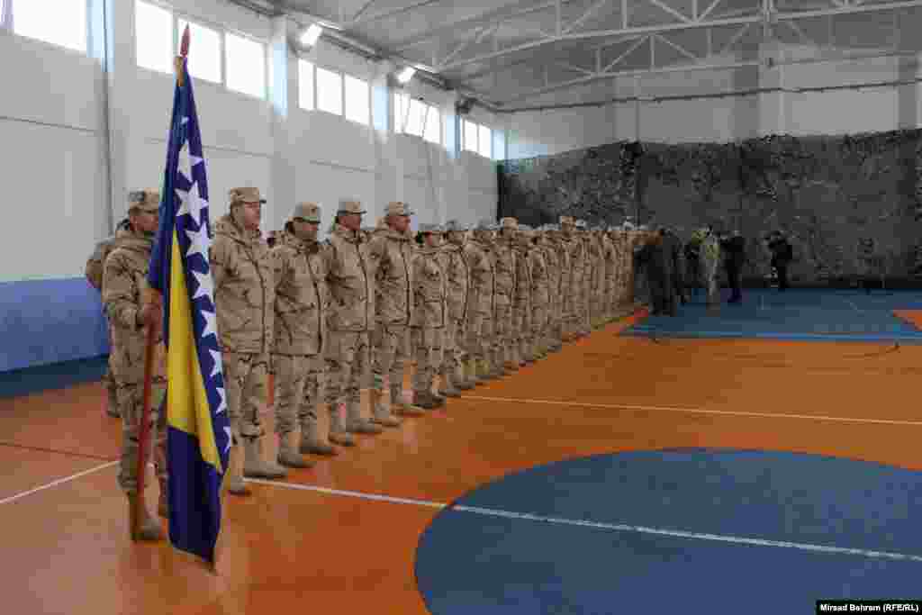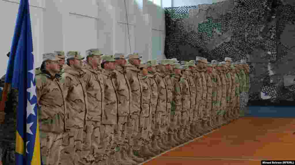 Za četrdeset i pet pripadnika i pripadnica Pješadijske jedinice, iz sastava 4. pješadijske brigade Oružanih snaga Bosne i Hercegovine, u petak je u Čapljini, u kasarni OS BiH „Božan Šimović“, upriličena svečanost ispraćaja u misiju u Afganistan. RSE / Foto: Mirsad Behram