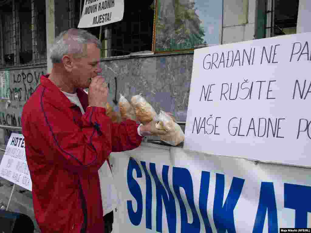 Povodom Praznika rada, u Tuzli i Banjaluci nekoliko hiljada građana je protestovalo na ulicama. Tuzlanske proteste su podržali i predstavnici plenuma širom BiH. Radnici u BiH protestovali su zbog novog zakona o radu, ali i zbog sve lošijeg položaja i uništavanja preduzeća. Paralelno sa protestima, dio građana BiH, odlučio je da Međunarodni praznik rada obilježi tradicionalnim urankom, uz glazbu i nezaobilazni vojnički grah. Foto / RSE: Maja Nikolić, Gojko Veselinović i Zoran Matkić