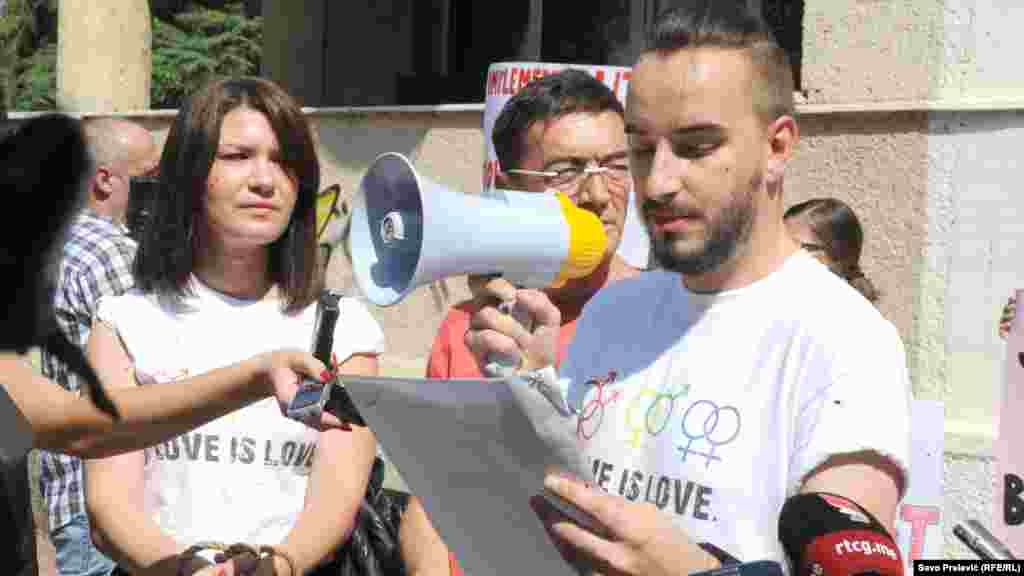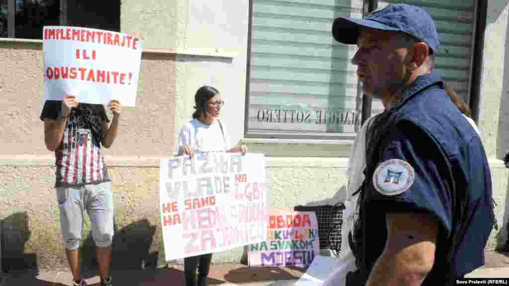 U Podgorici protest crnogorskih LGBT organizacija koje su nezadovoljne zato što država, kako tvrde, ne primjenjuje sopstvenu Strategiju za unaprjeđenje kvaliteta života seksualnih manjina zbog čega su i dalje izloženi diksriminaciji, brojnim rizicima i problemima. RSE / Foto: Savo Prelević