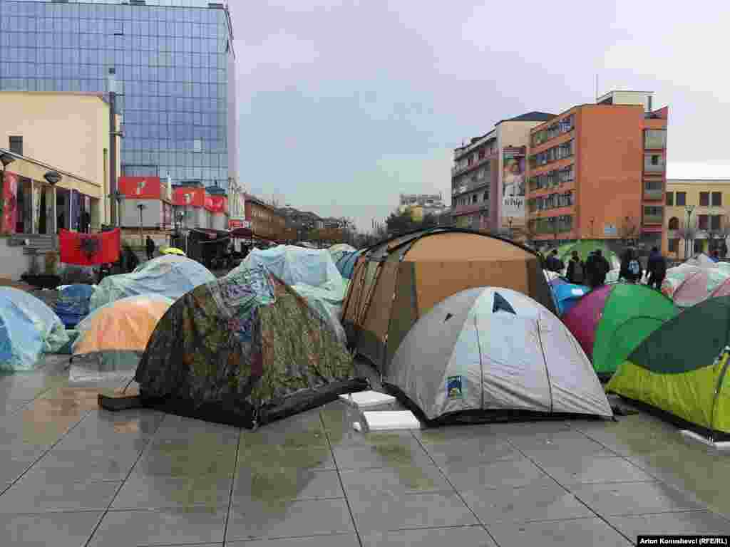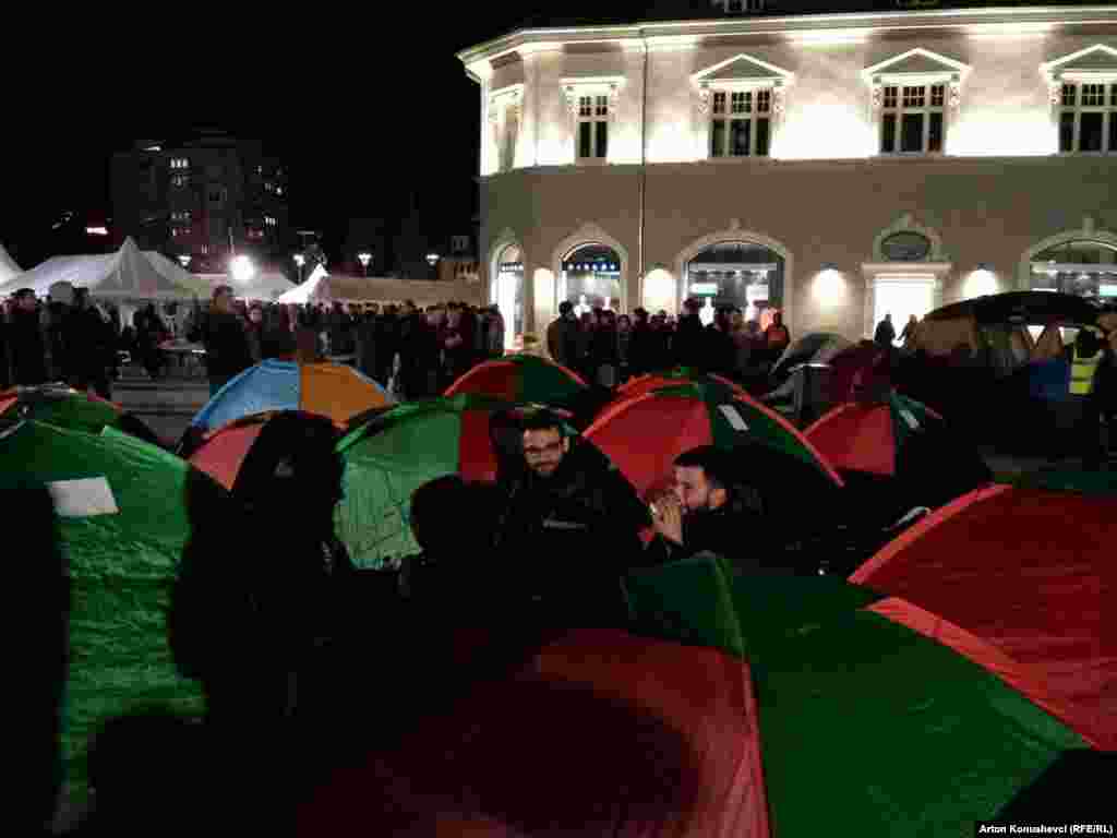 Kosovska opozicija provela je prvu noć u šatorima ispred Vlade Kosova, gde će se, kako je najavljeno nalaziti danonoćno kao početak “nove, trajne, epohe protivljenja“ aktualnoj vlasti. „Počinjemo sa protestima protiv ovog antiustavnog i antidržavnog režima koji će trajati do ostavke ove vlade. Ovo što ćemo izgraditi danas na trgu je infrastruktura protesta, a posebno 27. februara kada je naš zajednički protest i posebno tokom sednice na kojoj ova koalicija planira prokrijumčariti izbor predsjednika države, što se neće dogoditi“, kazao je Visar Imer, lider pokreta Samoopredeljenje.