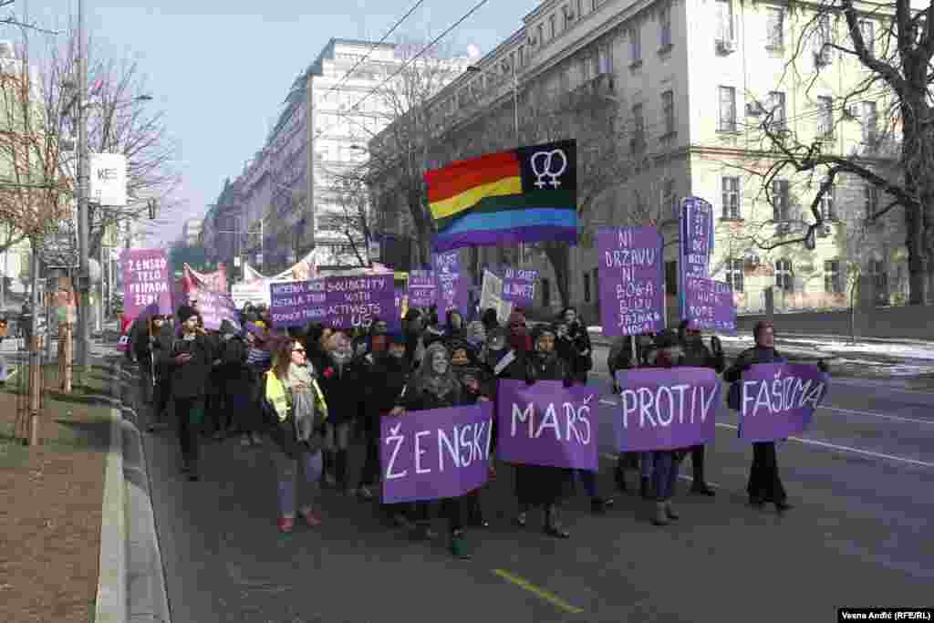 Aktivistkinje feminističkih i antifašističkih pokreta su u centru Beograda organizovale "Ženski marš protiv fašizma" želeći time da ukažu na rast desnih političkih snaga svuda u svijetu i ugrožavanje prava žena.