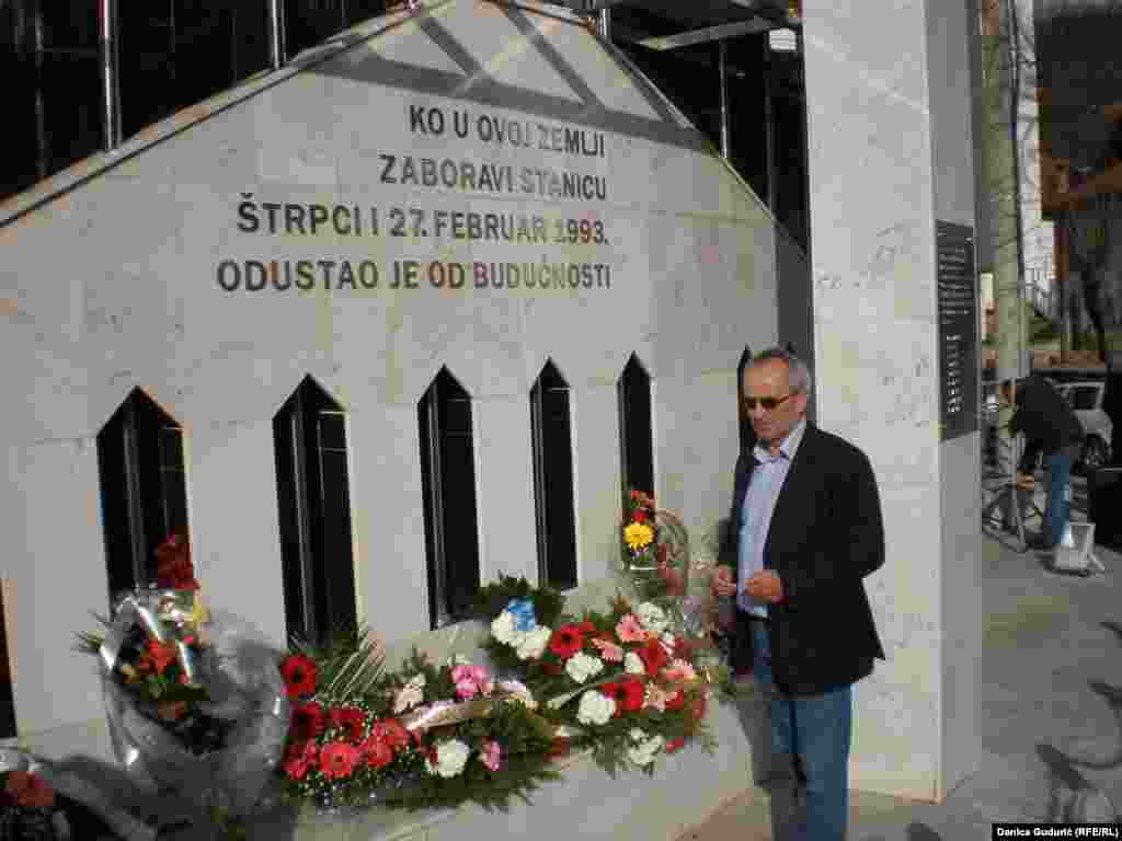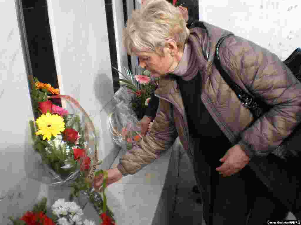 Laying flowers at the memorial for murdered civilians in Strpce 1993.