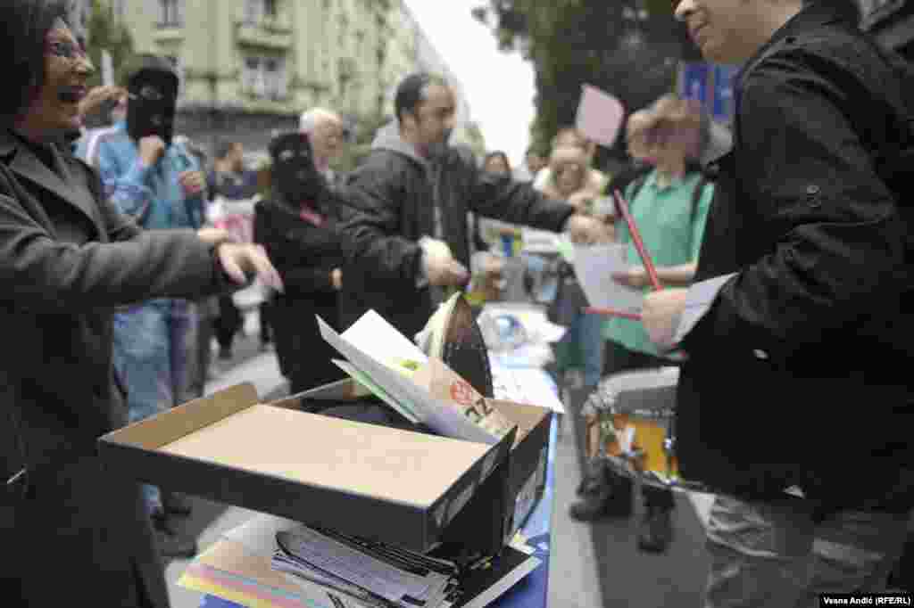 Performansom "Peglanje listića" stotinjak građana nastavilo je višenedeljne proteste protiv "diktature" u Beogradu. Nakon šetnje centralnim gradskim ulicama, oni su ispred sedišta Republičke izborne komisije Srbije peglali glasačke listiće.