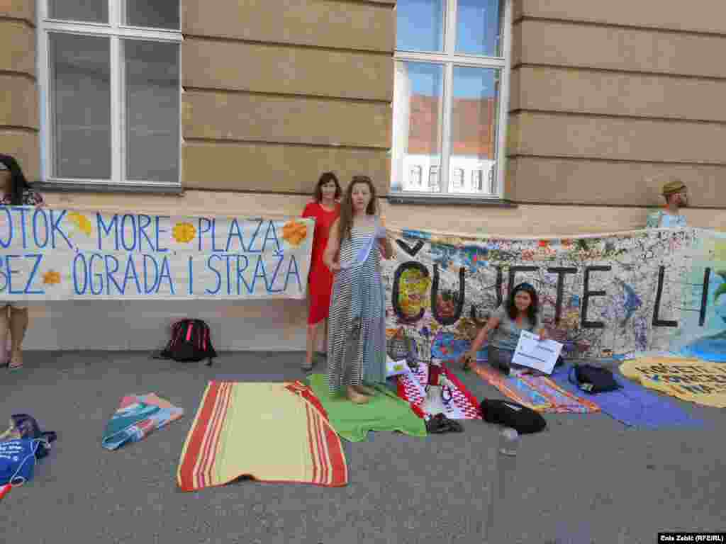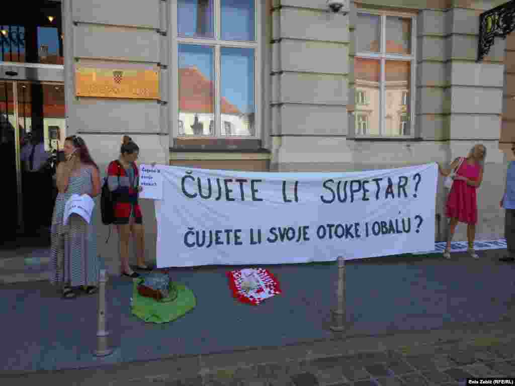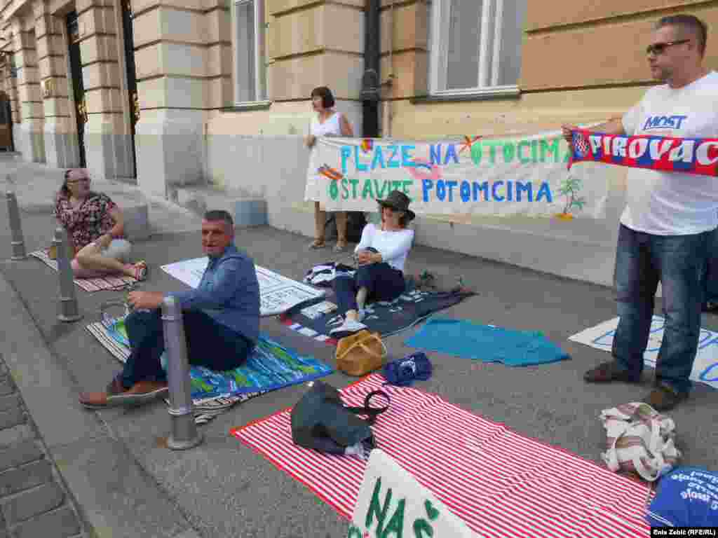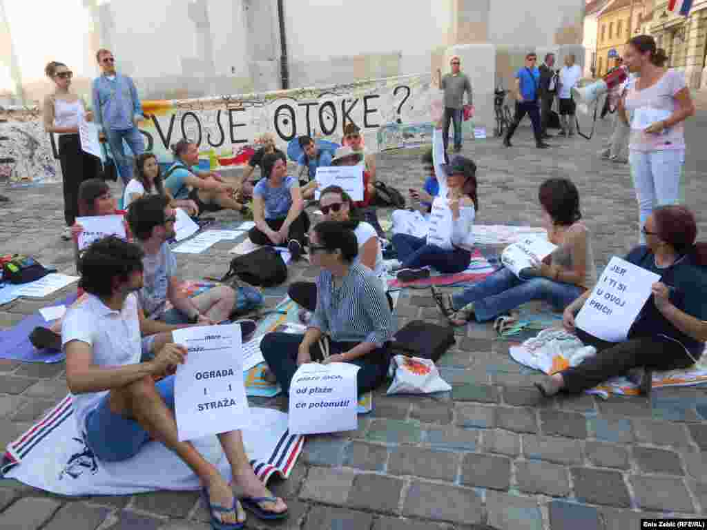 „Plaže na otocima ostavite potomcima“, „Otok, more, plaža – bez ograda i straža“, „Čujete li Supetar? Čujete li svoje otoke i obalu?“, „Hrvatska – zemlja 1000 koncesija“, „Hrvatske su plaže čiste, ali su koncesije šporke“ – samo su neke od poruka sa šarenih transparenata s kojima su aktivisti Pokreta otoka naoružani ručnicima za plažu prosvjedovali pred Saborom koji je 19. lipnja trebao izglasati novi Zakon o koncesijama.