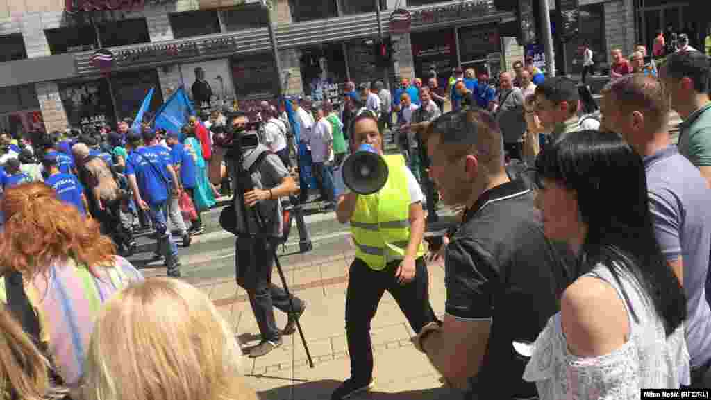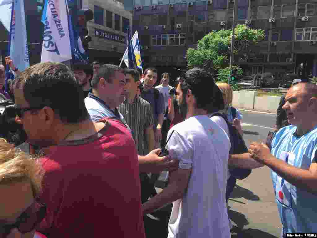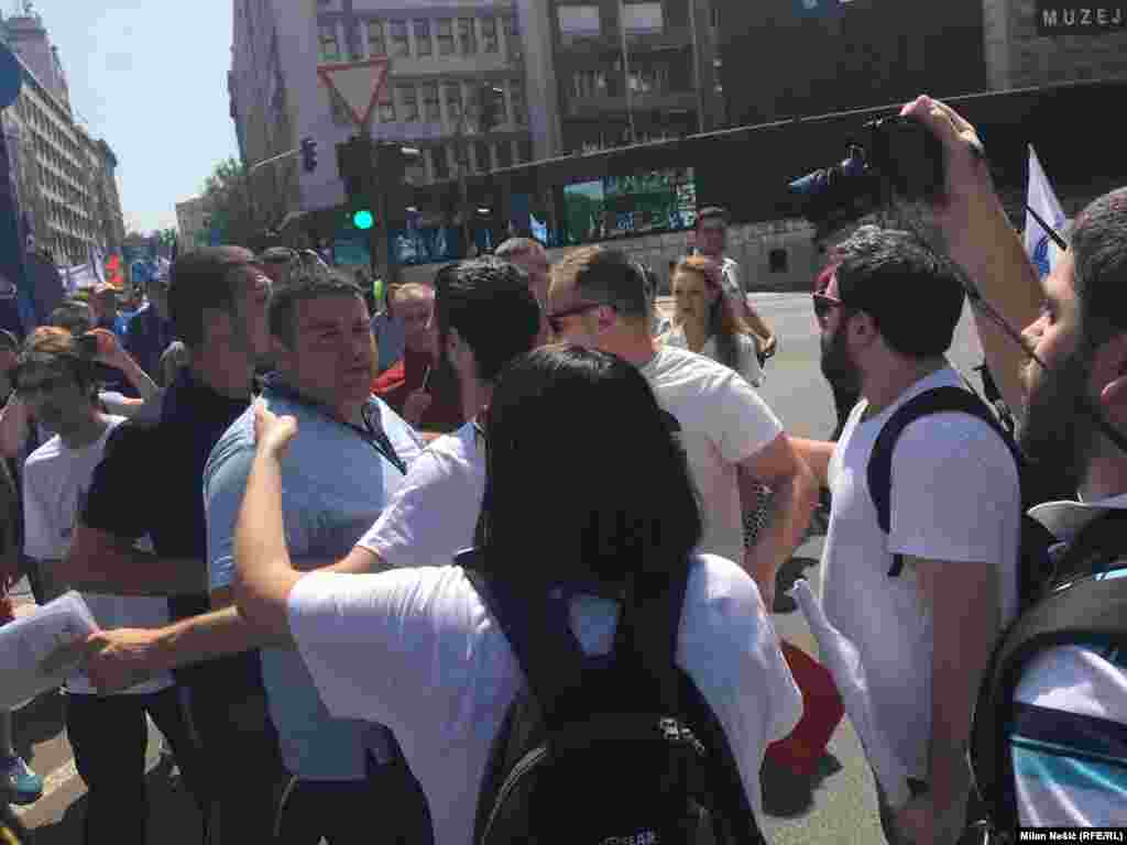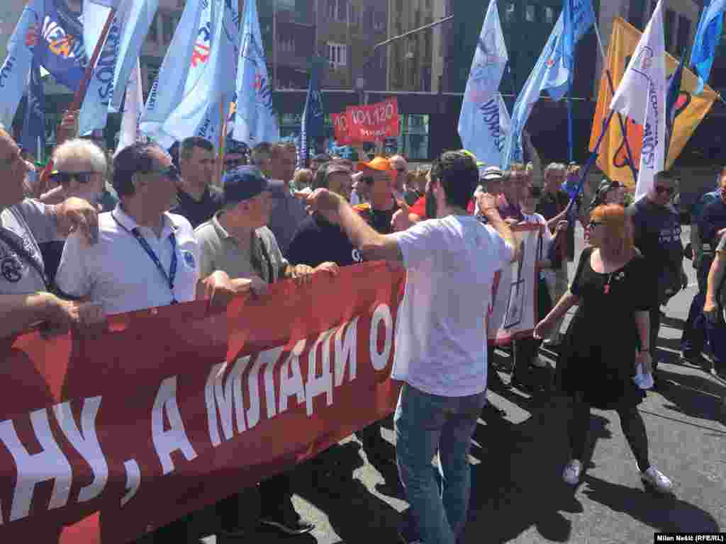 Neki od okupljenih su su prisutnom ministru za rad, zapošljavanje, boračka i socijalna pitanja Zoranu Đorđeviću uzvikivali: "Đorđeviću, lopove!", "Kolika ti je plata?", "Šta je bilo sa fabrikama?", "Šta je bilo sa Gošom?", a zatim pokušali da mu se i fizički približe dok je bio na čelu kolene koja je od Trga Nikole Pašića krenula put Skupštine Srbije, a zatim i zgrade Vlade Srbije – gde se protest, kako je planirano, i završava.