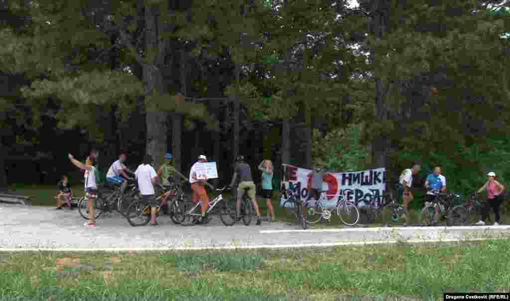 Niški biciklisti i članovi inicijative “Ne damo niški aerodrom” organizovali su biciklističku vožnju od Trga kralja Milana do spomen parka Bubanj u Nišu.