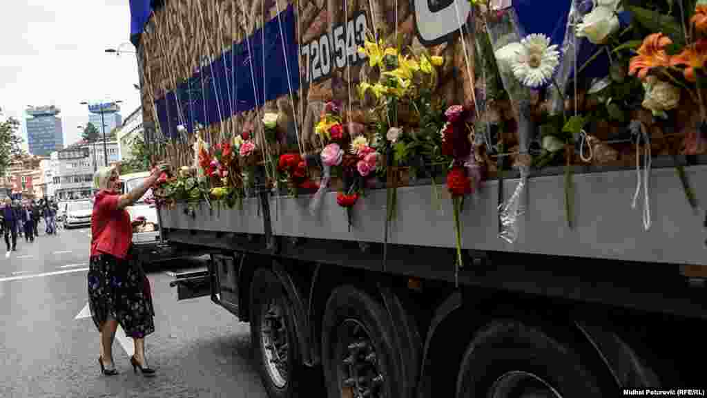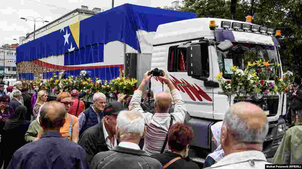 Kamion s posmrtnim ostacima 35 žrtava srebreničkog genocida ispraćen je danas iz Visokog ka Memorijalnom centru u Potočarima, gdje će 11. jula biti obavljena dženaza. Povorka se na putu ka Potočarima zaustavila u Sarajevu ispred zgrade Predsjedništva BiH, gdje su je ispratili brojni građani i članovi porodica.