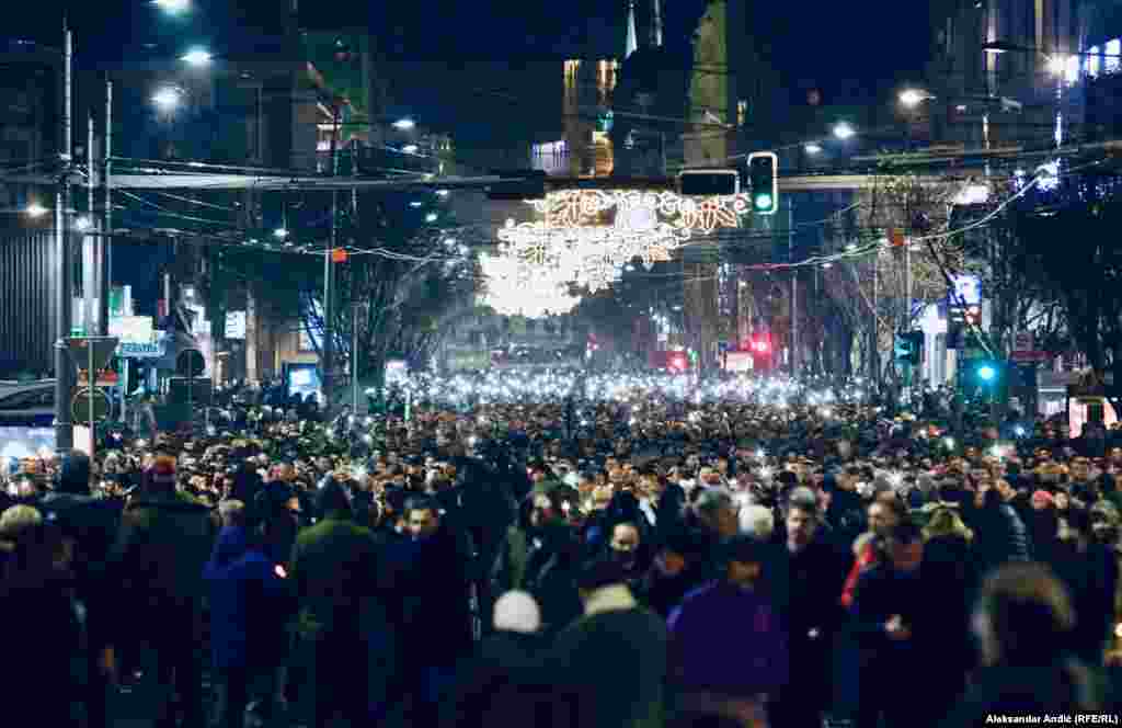 Nekoliko hiljada građana prošetalo je u tišini od Trga republike do hrama svetog Save u Beogradu, na godišnjicu ubistva kosovskog političara Olivera Ivanovića, zahtevajući odgovor na pitanje ko je odgovoran za njegovo ubistvo. Foto: Aleksandar Anđić