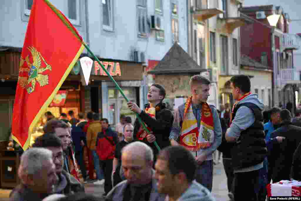 Centralne podgoričke ulice su od jutra bile ispunjene navijačima obje reprezentacije. Gužva, žamor, glasna muzika dopirala je sa terasa brojnih podgoričkih kafića i pabova. Pojedine ulice u centru Podgorice su zatvorene za saobraćaj, pojačano je prisustvo policijskih snaga.