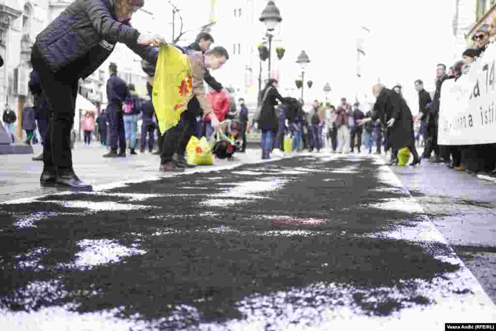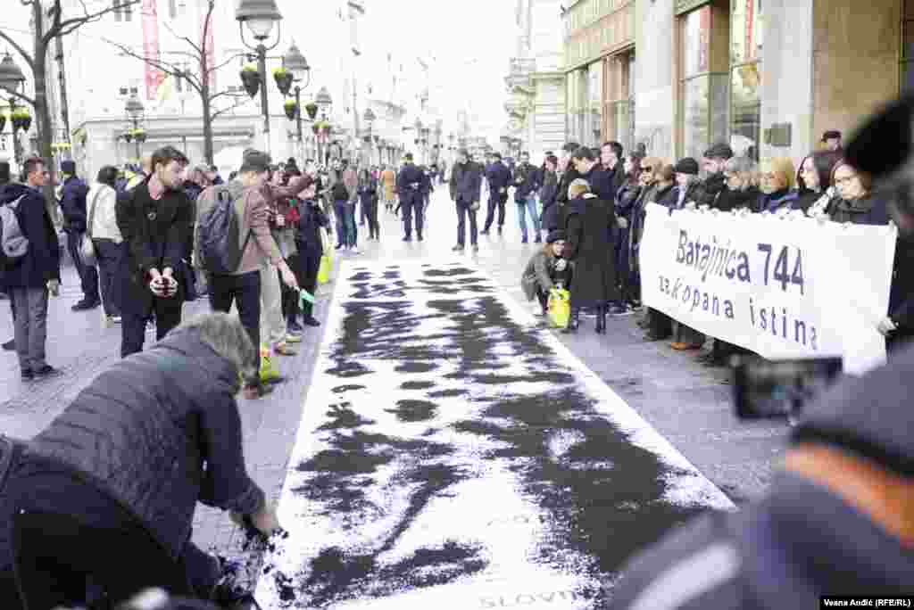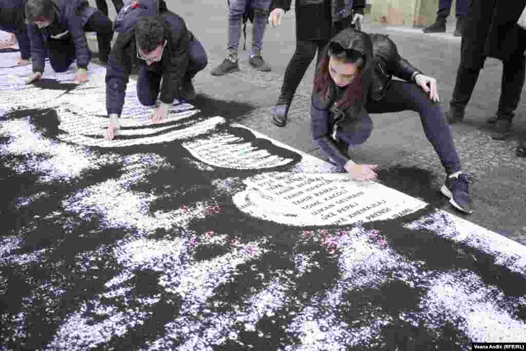 Aktivisti su prilikom performansa zemljom prekrivali imena kosovskih Albanaca iz masovne grobnice u Batajnici.