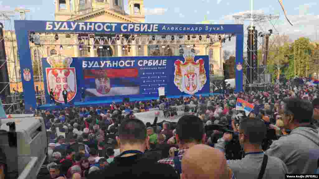 U Beogradu se odražava miting u okviru kampanje "Budućnost Srbije", u kojoj predsednik Srbije i lider Srpske napredne stranke Aleksandar Vučić obilazi gradove Srbije kao odgovor na antivladine proteste "1 od 5 miliona".