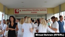 Više desetina ljekara okupilo se u jutros ispred ulaza u glavnu zgradu Sveučilišne kliničke bolnice (SKB) u Mostaru, gdje su održali polusatni štrajk upozorenja.