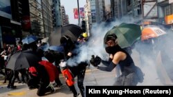 Policija je ispalila suzavac u centralnom poslovnom okrugu, gdje su neki demonstranti, krijući se iza kišobrana, blokirali ulice kada su zaposleni u kancelarijama izašli na pauzu za ručak.