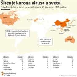 Koronavirus je ubio više od 100 ljudi u Kini, dok je više od 4.000 zaraženo, većinom u Kini, ali i u Tajlandu, SAD, Australiji, Južnoj Koreji, Singapuru, Maleziji, Japanu, Francuskoj, Vijetnamu, Nepalu, Kanadi, Kambodži, Nemačkoj i Šri Lanci.