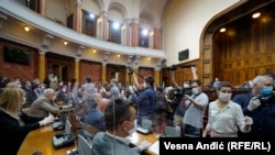 Poslanici Skupštine Srbije, uz jake mere zaštite od širenja korona virusa,okupili su se, prvi put od uvođenja vanrednog stanja, na skupštinskom zasedanju.