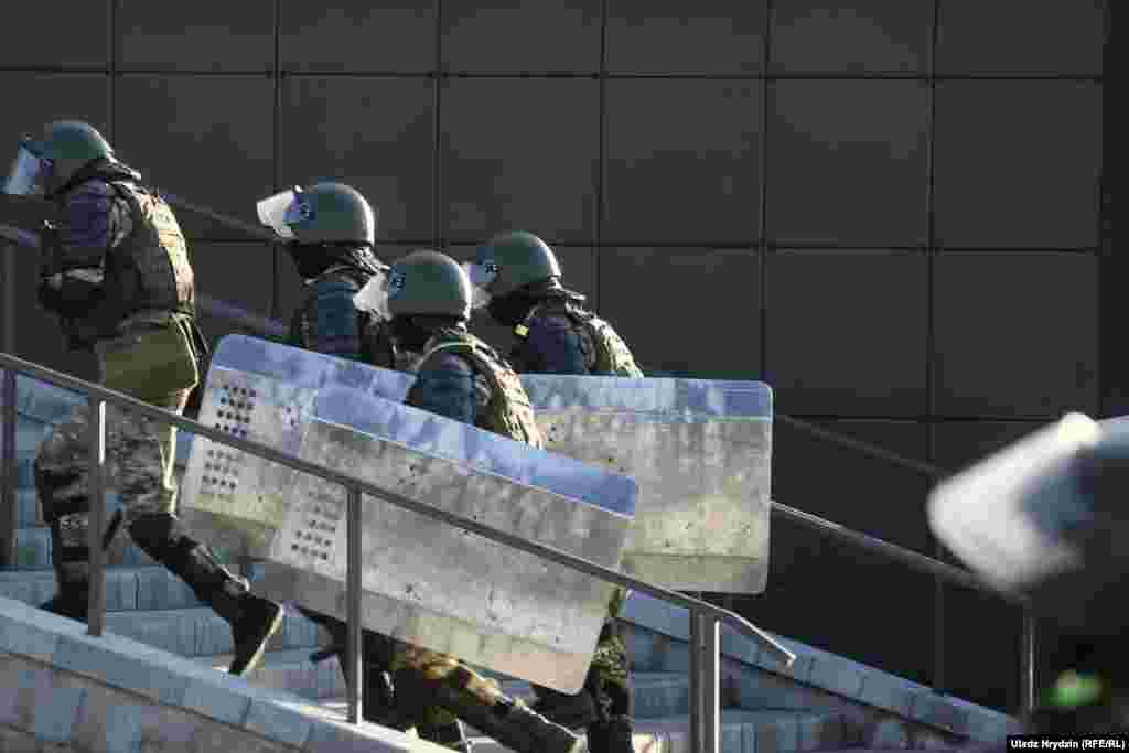 Interventna policija napreduje ulicom u Minsku u ranim satima 12. augusta.