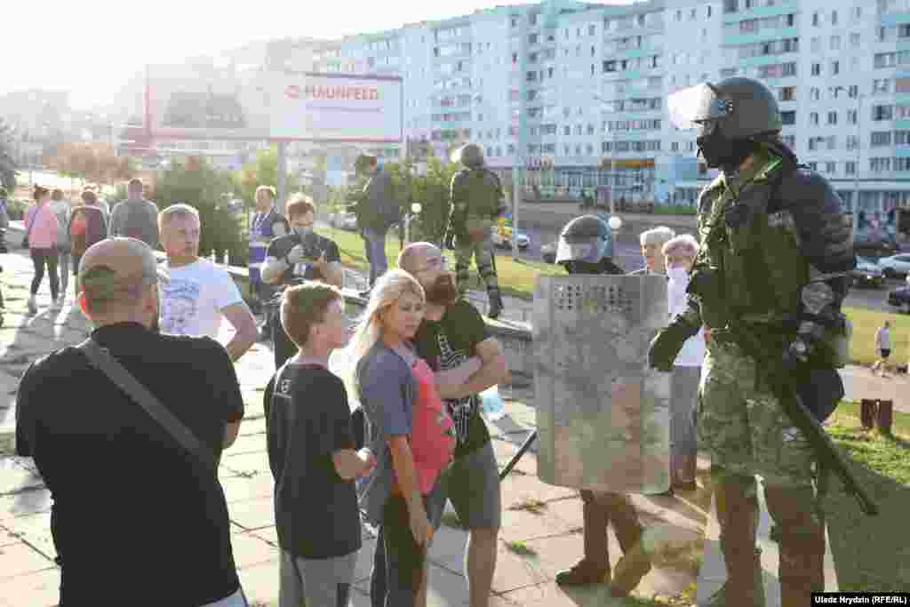 Ljudi razgovaraju sa bjeloruskim policijskim službenicima u Minsku 11. augusta.