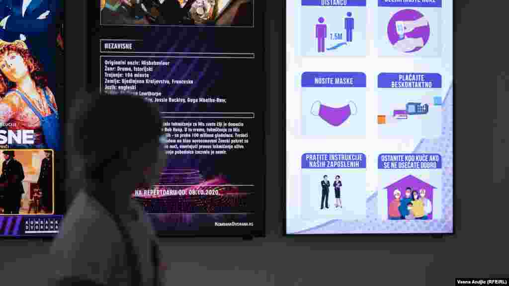 Bioskopi u Srbiji posle šest meseci pauze, zbog pandemije korona virusa, otvorili su svoja vrata za publiku 1. septembra akcijom "Povratak u bioskope". Prvog dana na repertoaru su već prikazivani filmovi uz simboličnu cenu ulaznice, a od srede (2. septembar) će biti prikazivani novi filmovi. Projekcije se odvijaju uz preventivne mere, poput razmaka od jednog sedišta između posetilaca, osim za one koji dolaze zajedno. Takođe, u redovima za čekanje je određen fizički razmak od 1,5 metra.