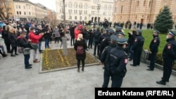 Policija je pozivala učesnike protesta da se raziđu, da ne krše epidemiološke mjere, no kako ih nisu poslušali, na licu mjesta su se pojavili i pripadnici policijske jedinice za podršku. Na pojavu policije, okupljeni uzvikuju „Izdajnici!“.