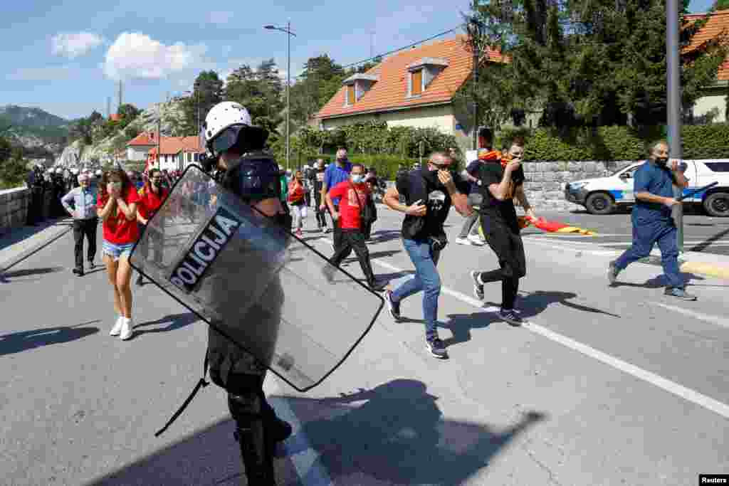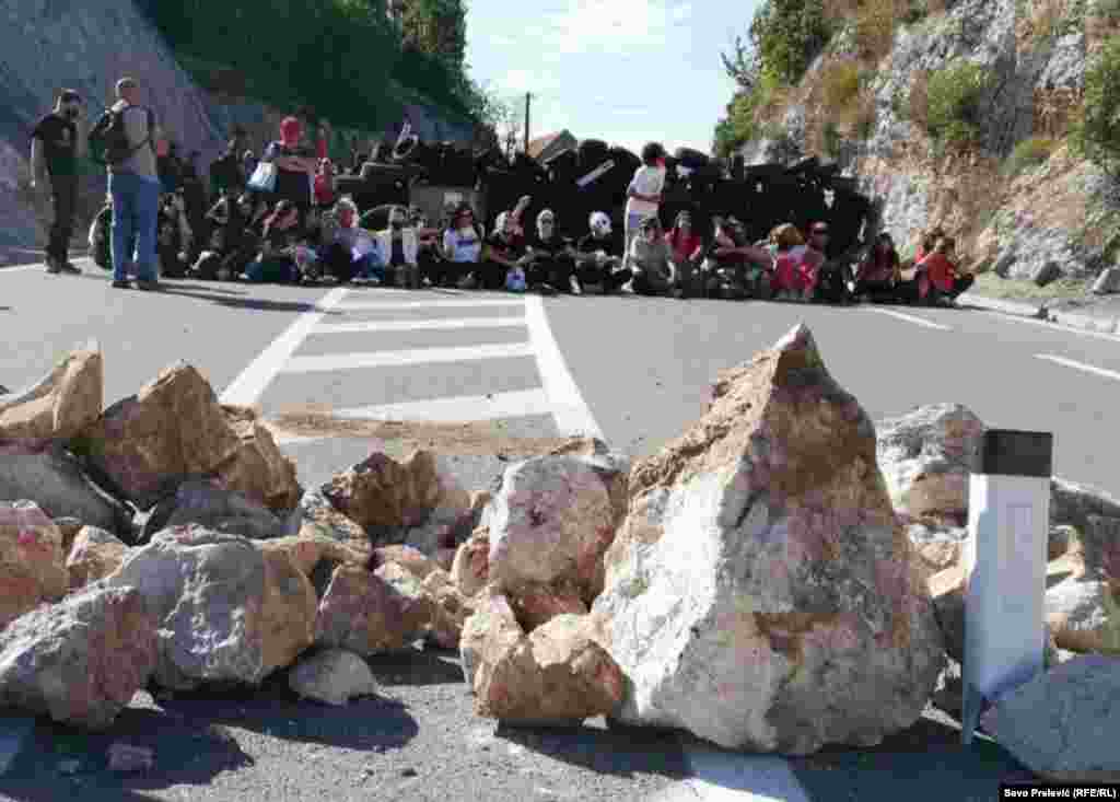 Nekoliko policijskih blokada na ulazu u Cetinje građani su probili. Na kilometar od ulaska u Cetinje (iz pravca Podgorice) protivnici ustoličenja postavili su barikade, uglavnom od automobilskih guma.