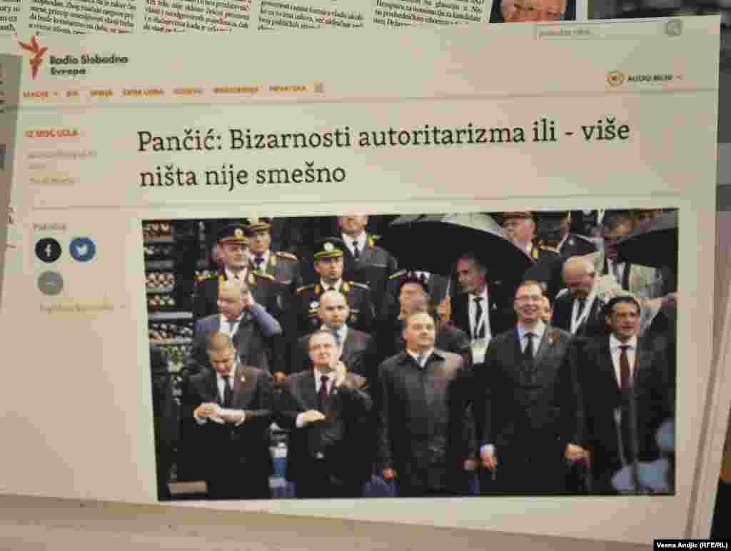 Upinjući se da dokažu da u Srbiji nema cenzure, ili pre da pokažu koliko njihov šef ne može da podnese kritiku, članovi Srpske napredne stranke (SNS) mandatara za sastav nove vlade Srbije, Aleksandra Vučića, priredili su izložbu "Necenzurisane laži". Među 2.500 primeraka naslovnih strana, vesti, izveštaja, komentara, analiza, karikatura u medijima iz poslednje dve godine, koji se kritički osvrću na vlast SNS-a ali pre svega mandatara, su i tekstovi i karikature sa internet stranice Radija Slobodna Evropa.
