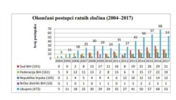 "Tu treba razdvojiti dvije vrste predmeta, prije svega, one koje su u stadijumu glavnog pretresa ili u postupku pravnih lijekovima pred Sudom BiH, prema našim saznanjima, takvih je 120.Treba imati na umu i predmete koji su ili u fazi prijave ili u fazi istrage pred Tužilaštvom BiH, njih je oko 450 predmeta", objasnio je Smailagić.